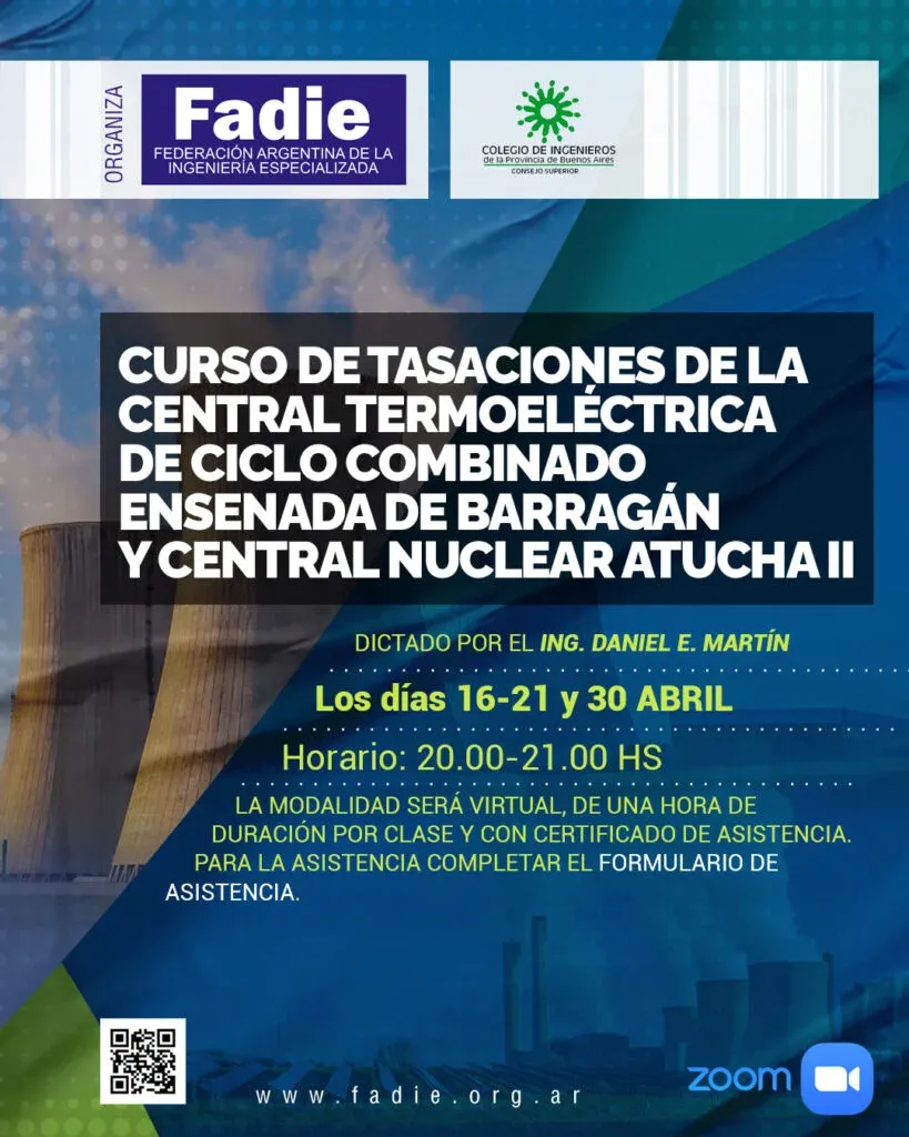 - Tasación de la Central Nuclear Atucha II del año 2018, donde se analizará la obtención del valor de reposición de la central, su depreciación por edad, estado, intensidad de uso y obsolescencia. Costos nucleares de ingeniería. ** Inscripción:** Los interesados en participar, deberán solicitar en su consejo/colegio respectivo el formulario que deberan llenar y enviar. En respuesta al mismo, recibirán el Link 24 hs antes, recibiran la ID de la reunión y el Código de acceso.